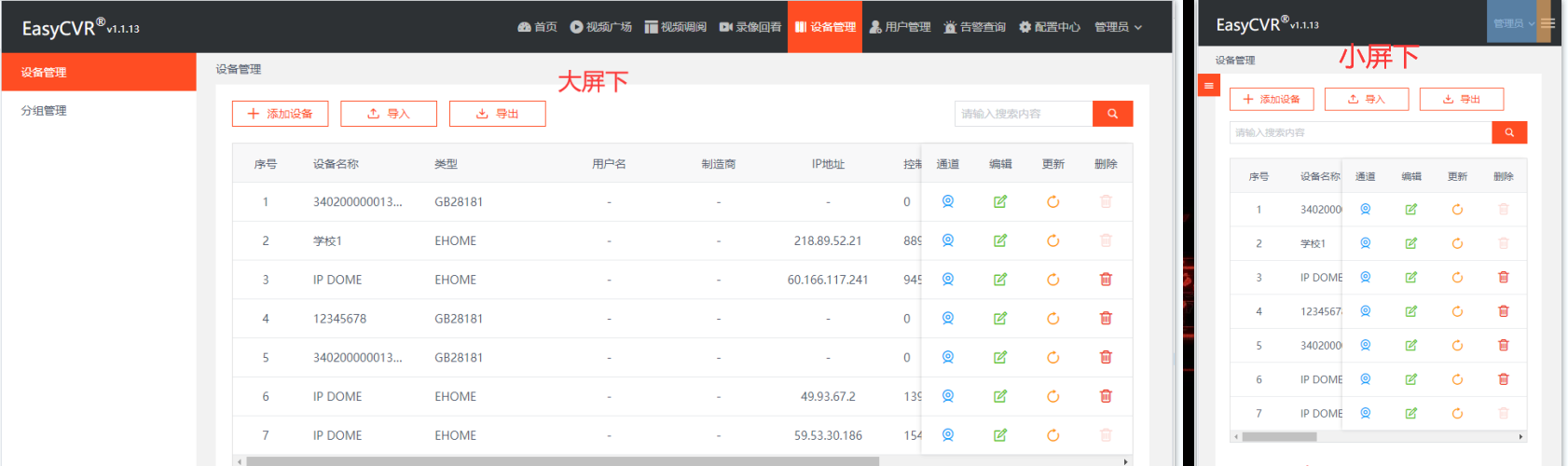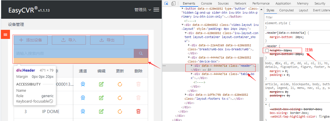 近期,研发团队发现EasyCVR在小屏下样式下,出现了层叠错乱的现象。研发人员第一时间进行了排查。