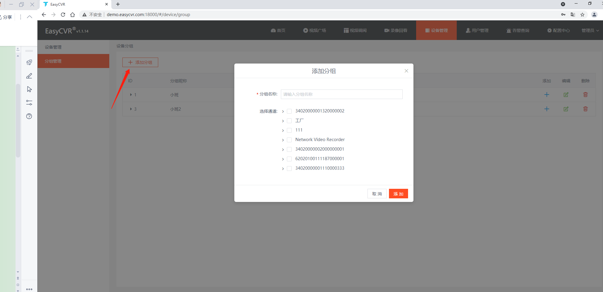 近期我们发现一个问题,即EasyCVR在进行创建新用户的时候,发现无法获取摄像机权限,角色在创建时无法选择摄像机。其实这个跟EasyCVR建立用户的机制有关,EasyCVR的用户创建和EasyNVR或EasyGBS不同,需要先建立分组,我们下面来重复一下正确的步骤。