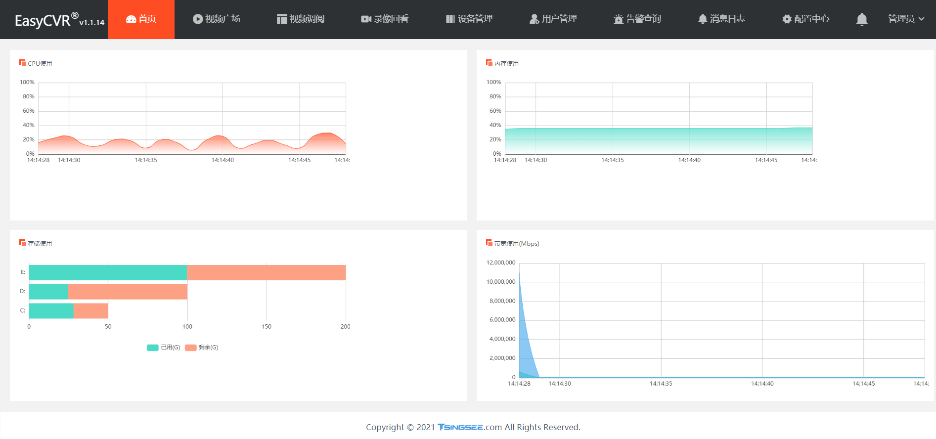 平台化管理便于安保指挥调度,在EasyCVR安防视频云服务平台可以查看实时监控也可以查看录像回放;还可以查看告警信息和人脸智能分析;以数据为基础,实现可视化运行,可对设备状态、数据统计情况等信息进行深度加工,及时掌握平台运行数据,为智能化楼宇安防建设提供有力的数据支撑。