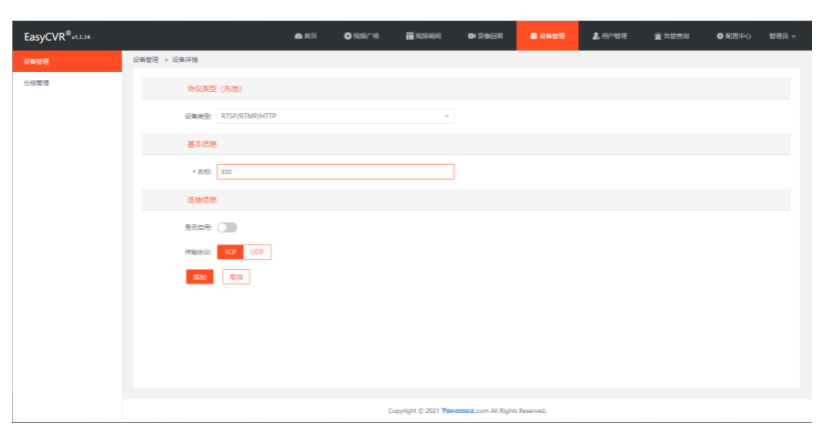 在EasyCVR的设备管理中添加设备时,我们发现一个问题:添加设备完成后,设置不启用并保存,再回到设备列表中查看,显示的却是启用。