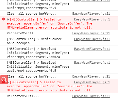EasyCVR添加一个本地流通道,把音频勾选上,在浏览器视频广场播放,浏览器一直出现相同错误,并没有声音输出:“[MSEController] > Failed to execute ‘appendBuffer’ on ‘SourceBuffer’: The HTMLMediaElement.error attribute is not null.”