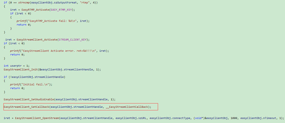 分析c++ EasyStreamClient代码是先各种初始化EasyStreamClient,并设置回调函数;在回调函数中设置EasyRTMP推流参数:EasyRTMP_InitMetadata