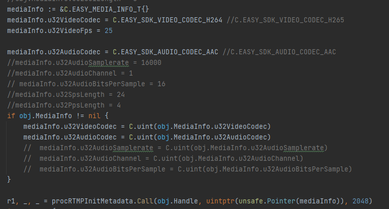而GO业务层都是会先初始化好,向EasyRTMP_InitMetadata填写默认参数,导致里面参数不正确,声音推送错误: