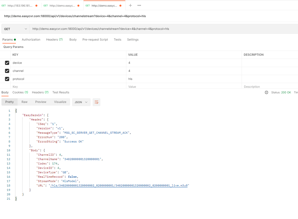 4.再调用获取设备通道直播链接接口,就可以获取到播放流