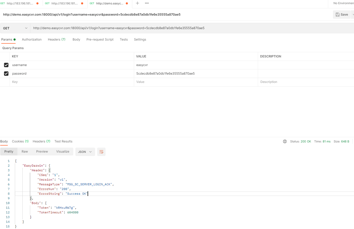 1.首先我们默认easycvr是开启接口鉴权的,所以我们在调用任何业务接口之前首先要先调用登录接口