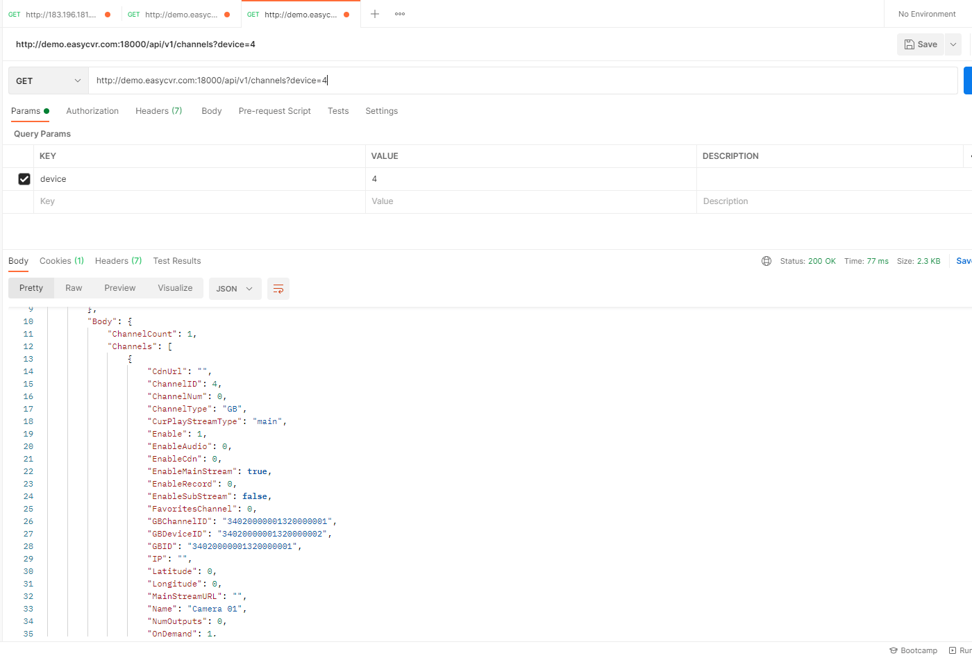 3.再调用获取通道信息接口,找到要播放设备的通道号
