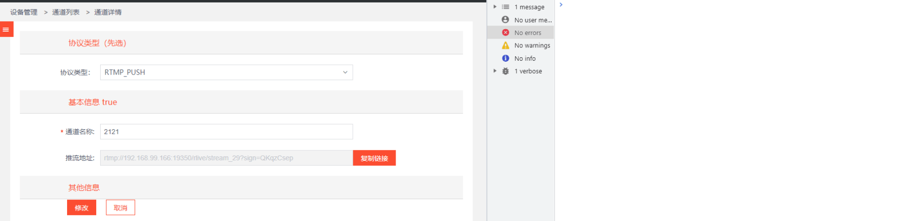 也只有在RTMP_PUSH类型的通道才会用到vue-clipboards 复制的插件,经过我们反复测试发现在编辑其他类型的通道时,Rtmp_Push返回的数据类型是 undefined,然而vue-clipboards 不支持接受undefined数据类型,这就导致了该报错。