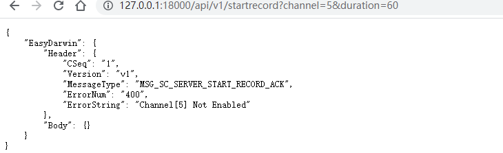 在调用接口时出现报错"ErrorString": “Channel[5] Not Enabled”,并且EasyCVR软件无法录像,报错信息如下: