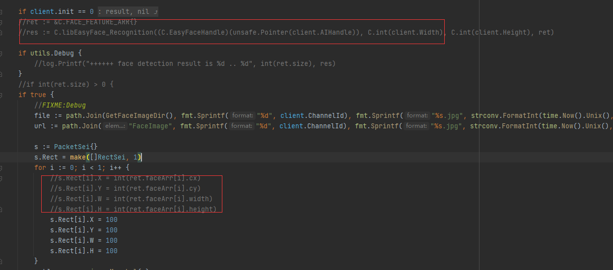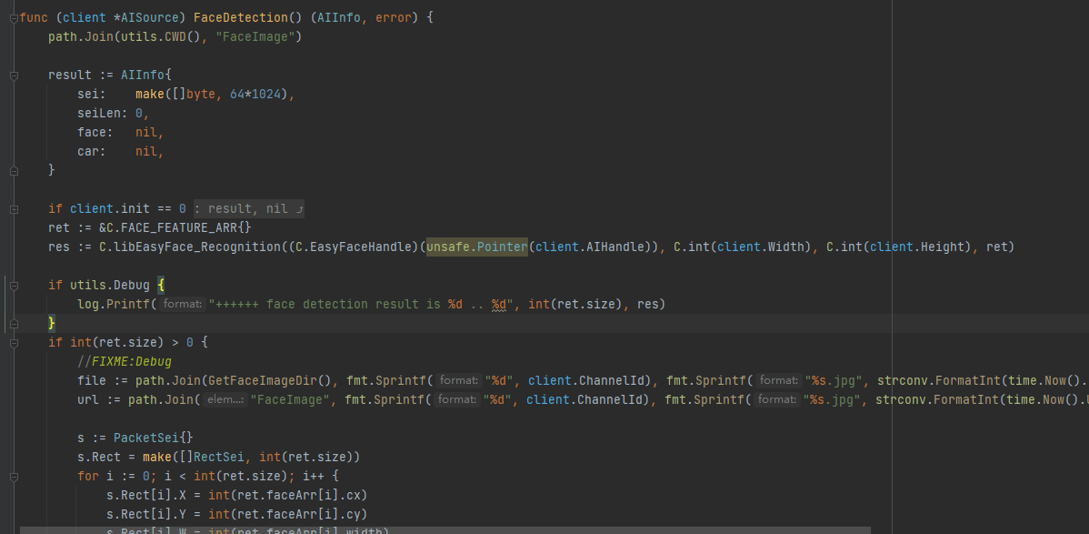 由于人脸识别是一个有点耗时的操作,大约300ms才能识别人物基本信息,然而在go层代码做的是同步操作,以下为部分代码: