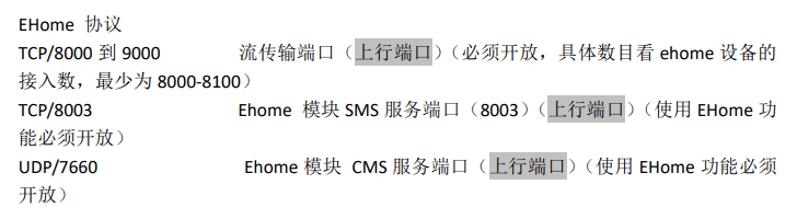 EasyCVR使用Ehome协议接入的话需要开通的端口如下所示: