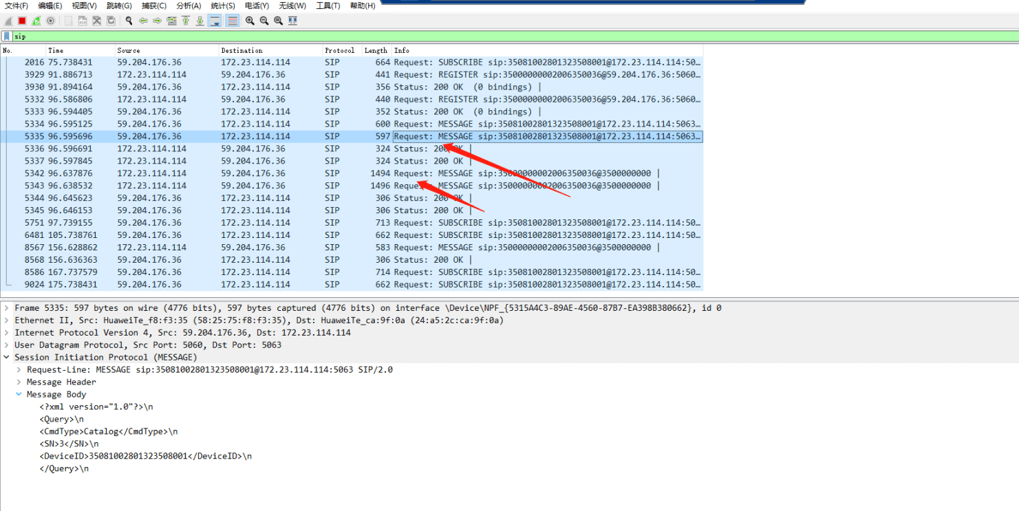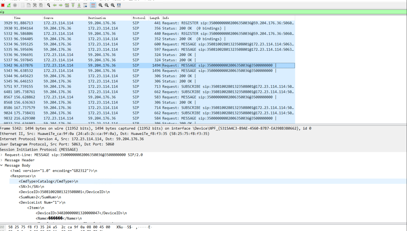 首先我们确定是上级收不到消息后,可以在EasyCVR上面进行抓包,抓取个五分钟左右的信令包即可,如下: