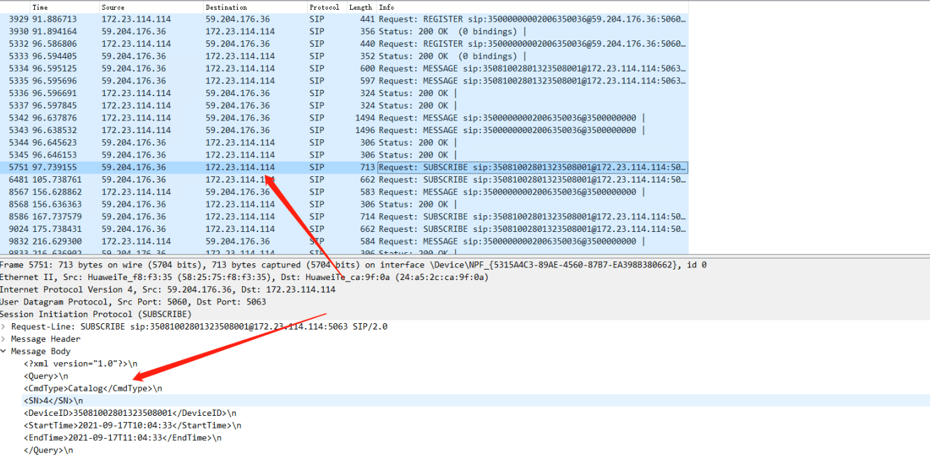 从上面图可以看到上级把获取通道的catlog消息封装到subscribe里面了(即订阅消息),而EasyCVR并未对这个消息进行处理,只是回复了200OK,并没有推送消息。