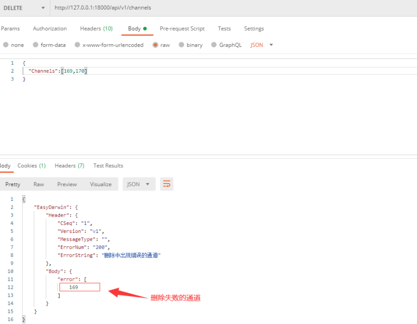 我们在调用EasyCVR中批量删除接口时,发现返回了错误信息“删除中出现错误”,返回内容如下:
