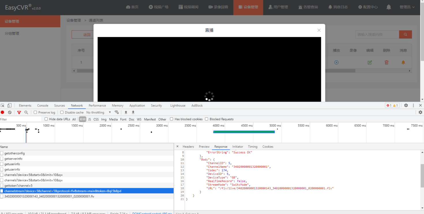 EasyCVR中国标GB28181接入的设备请求播放的时候没有获取到快照地址,通过分析,查看到当接入的是国标设备时,页面请求播放接口,直接就没有返回地址,所以需要在后端接口中添加国标设备的快照地址。