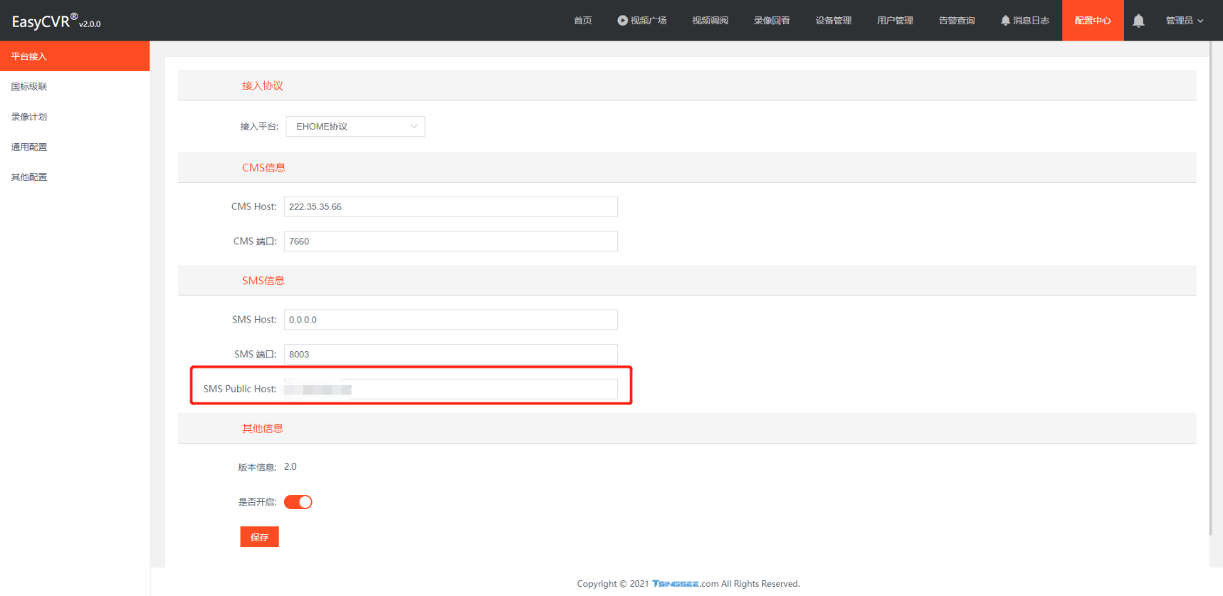 3.EasyCVR的SMS的ip地址是正确的,但是我们发现CMS的ip地址被修改过: