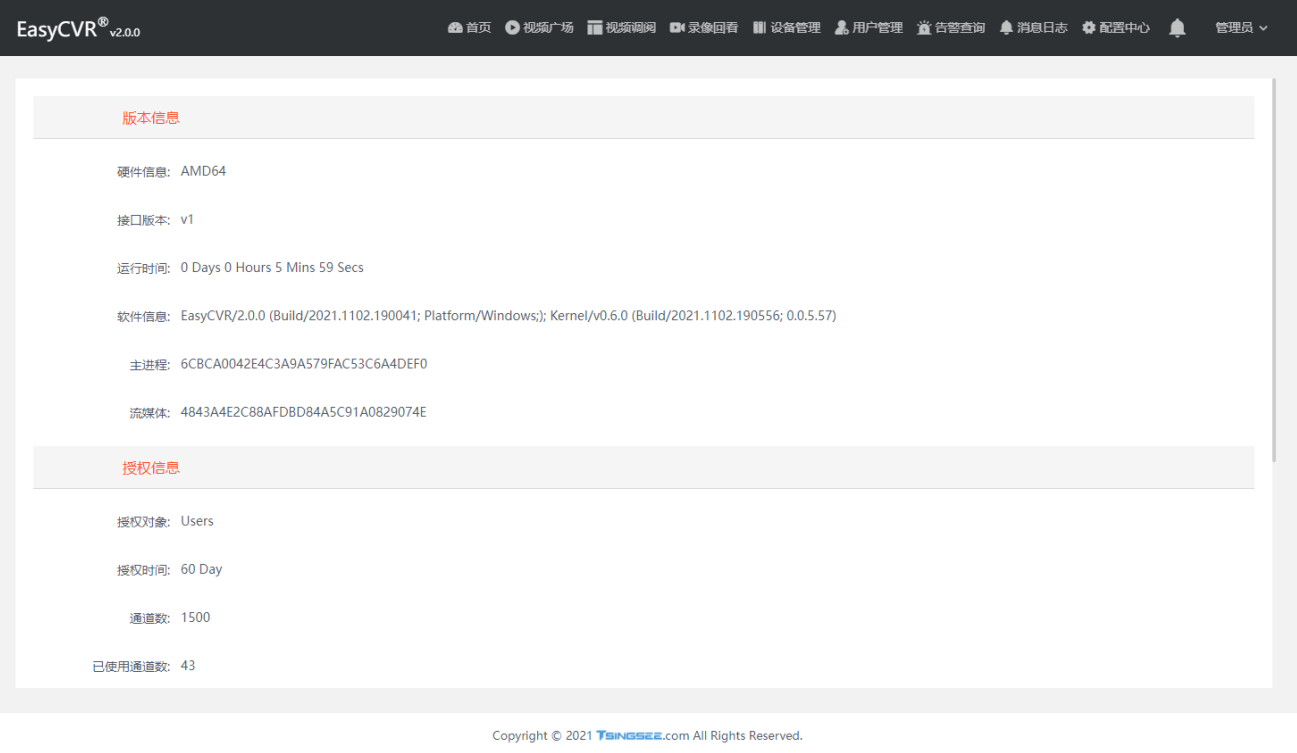 视频融合云平台EasyCVR集视频联网共享、存储、流媒体转发、视频转码、视频上云、智能分析统一等多种功能为一体,已经在很多项目中稳定运行,此外,视频相关解决方案均可访问TSINGSEE青犀视频,可以联系我们获取演示方案,直观感受,也可自行进行下载及测试,欢迎大家了解。