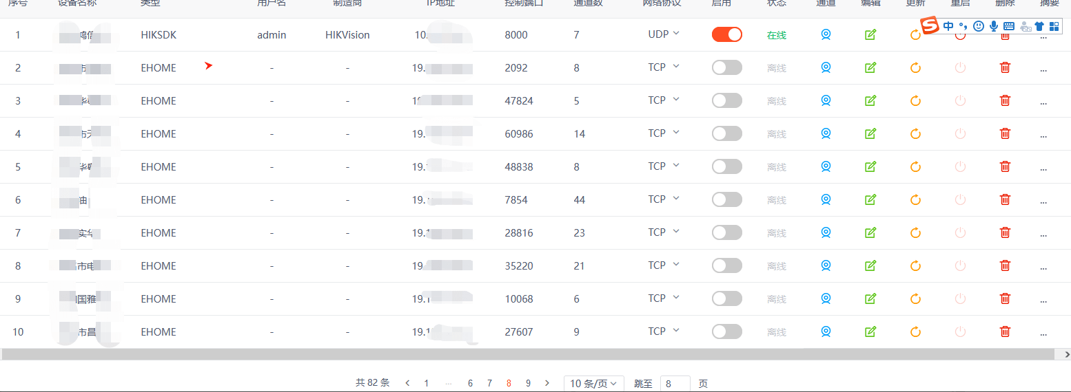 EasyCVR视频网关平台接入的部分Ehome设备显示离线,可以从下图中看到,除了通过HIKSDK接入的设备外,通过Ehome接入的设备全部离线: