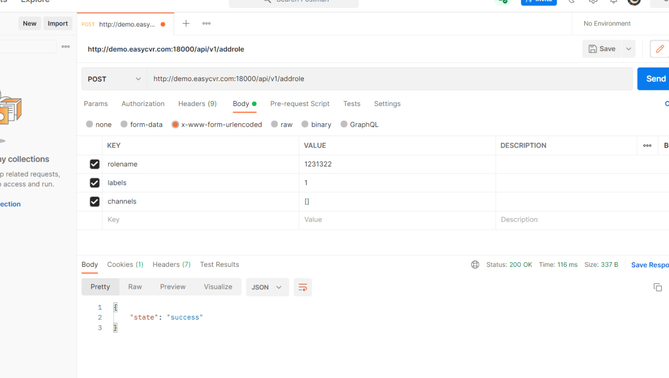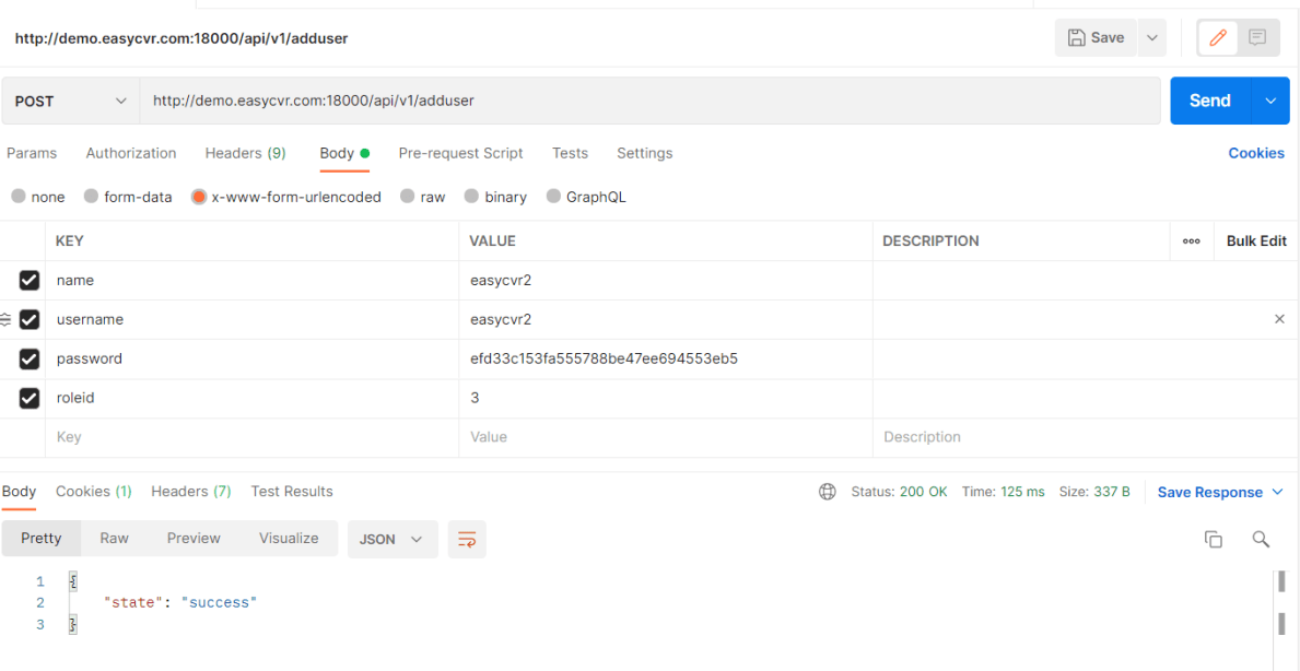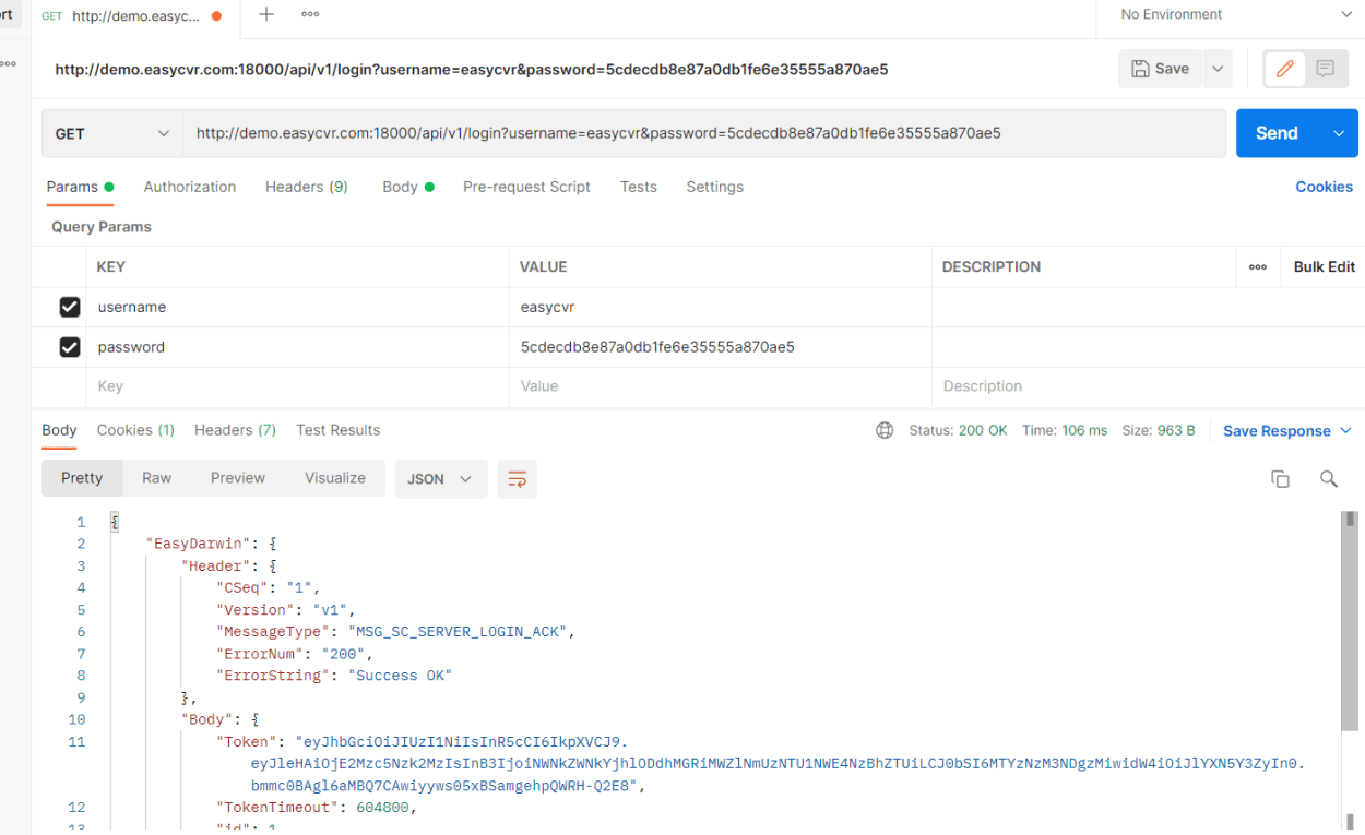 本文我们介绍下EasyCVR如何用api设置配置新的账号和角色。首先还是要调登录接口,在postman上面调用登录接口: