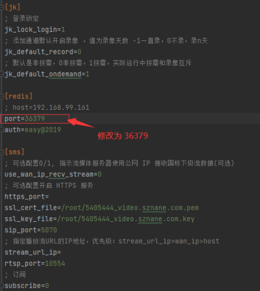 于是这里只需要关闭占用的进程,并且同时修改easycvr.ini文件中redis默认的端口即可。