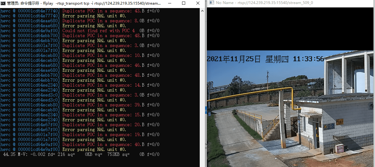 然后我们用ffplay播放下,可以看到有丢包的情况,而且很严重: