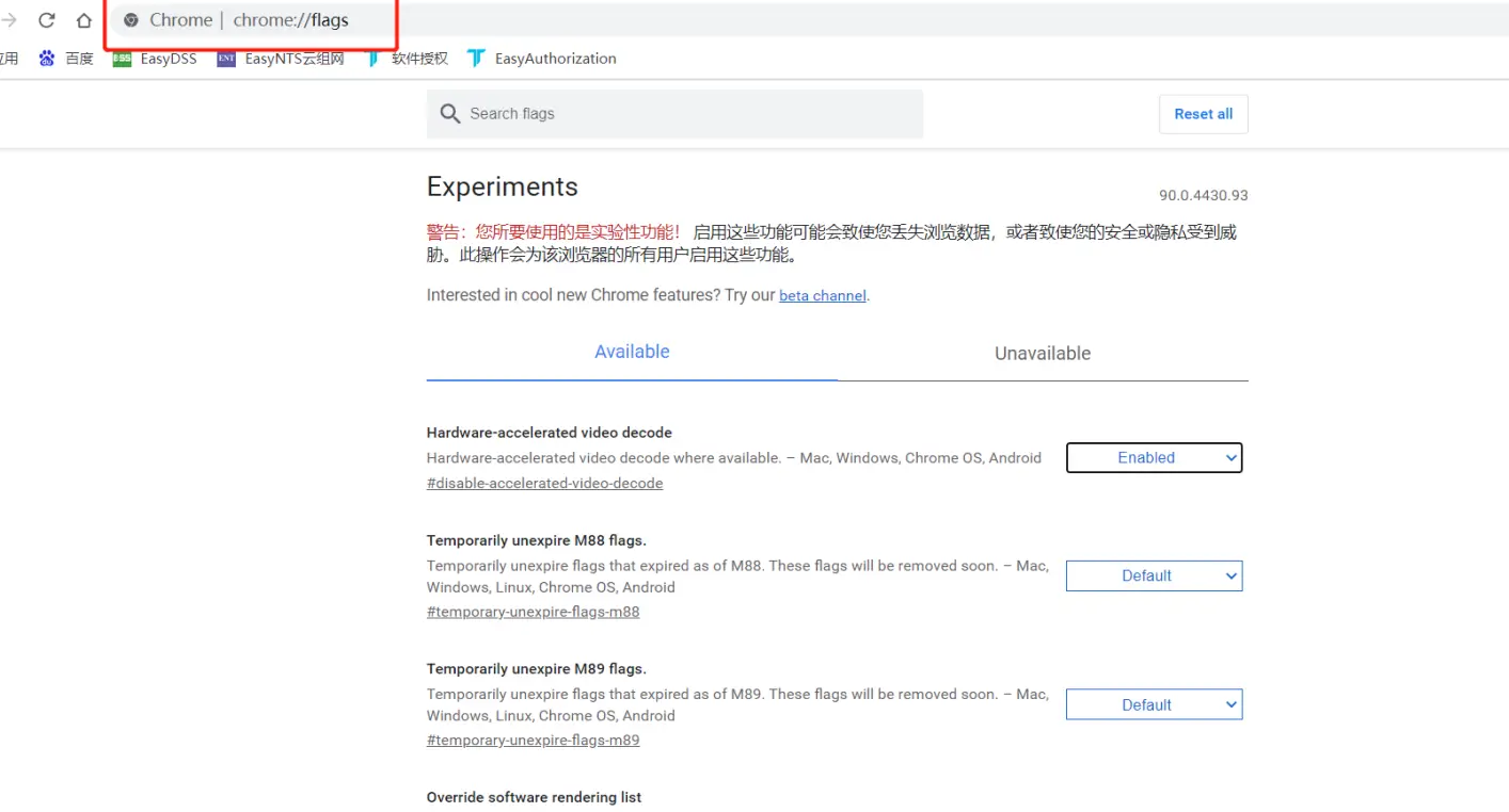 测试其他的浏览器,播放不会导致断流,唯独chrome会出现这个问题,所以我们查看chrome默认使用的硬件加速: