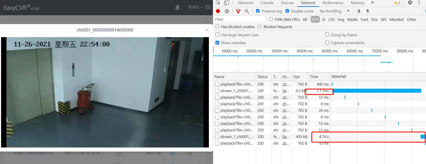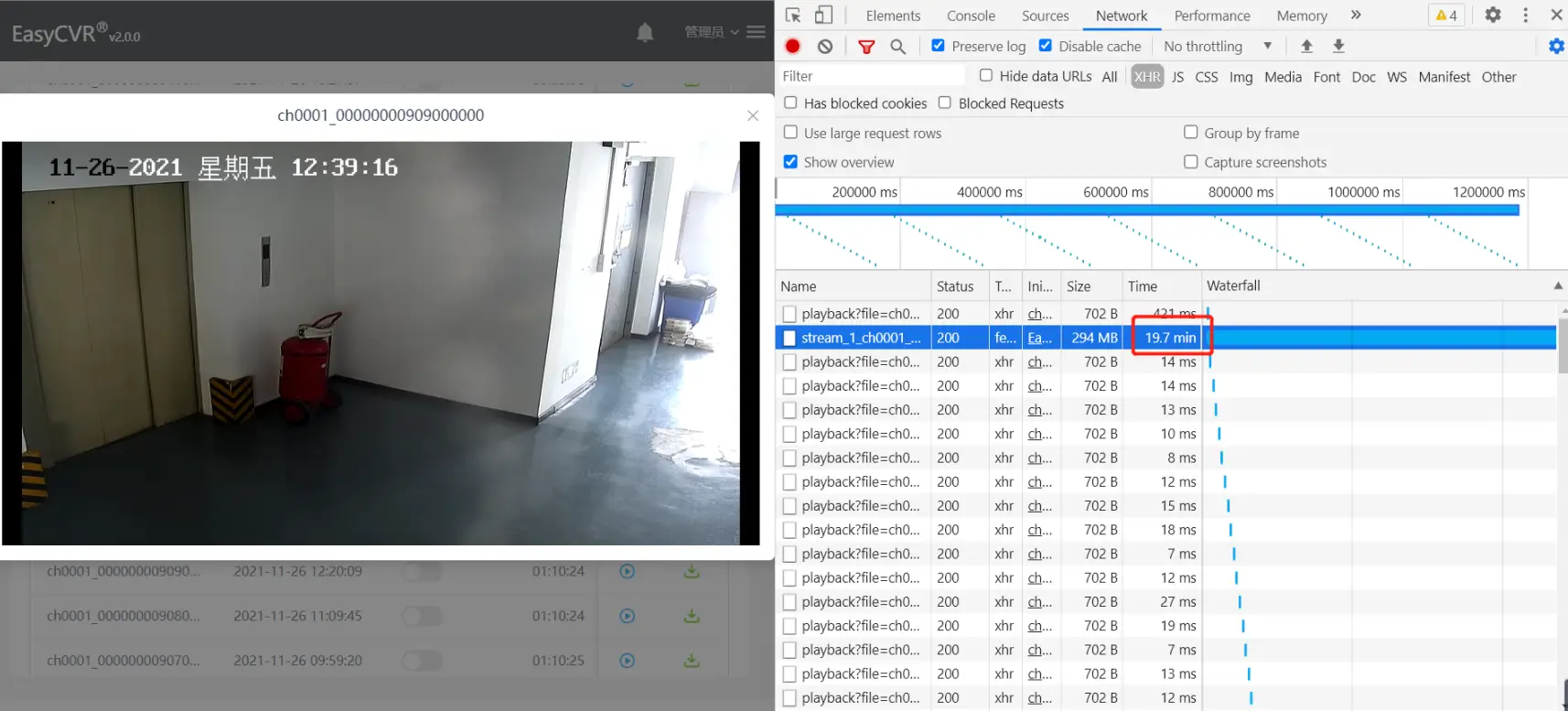 我们可以通过开发者工具看到流是否正常,当EasyCVR播放黑屏闪屏的时候,我们的flv的流会进行重新拉取: