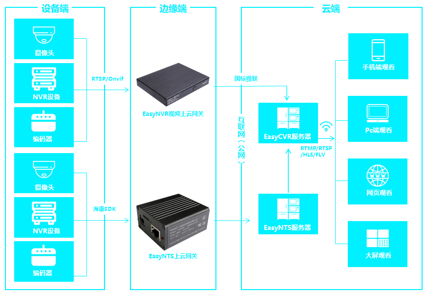 EasyCVR视频融合平台具备优秀的视频转码、播放、级联能力,能够将视频通过RTMP协议推送到阿里、腾讯等公有云厂商的视频服务中。目前EasyCVR正在开发智能分析项目,在不久后,我们会将行人检测分析、车牌识别、人脸识别等功能都融入进EasyCVR当中。