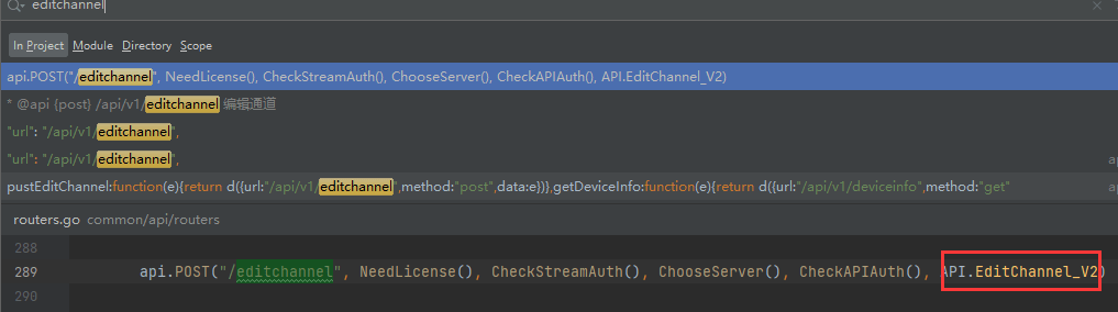 2、随后,在后端使用编辑器搜索“editchannel”字段;