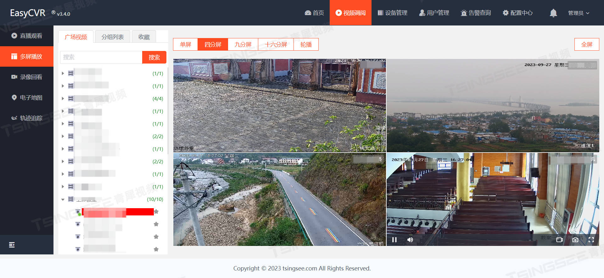 视频集中存储/云存储/视频监控管理平台EasyCVR能在复杂的网络环境中,将分散的各类视频资源进行统一汇聚、整合、集中管理,实现视频资源的鉴权管理、按需调阅、全网分发、智能分析等。AI智能/大数据视频分析EasyCVR平台已经广泛应用在工地、工厂、园区、楼宇、校园、仓储等场景中。感兴趣的用户可以前往演示平台进行体验或部署测试。