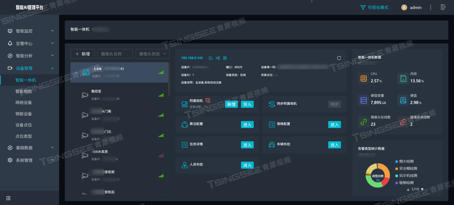 2、它集成了高精度AI智能算法与视频智能化综合管理平台,能智能识别和精准研判出矿山人员不安全行为、设备不安全状态、环境不安全因素;