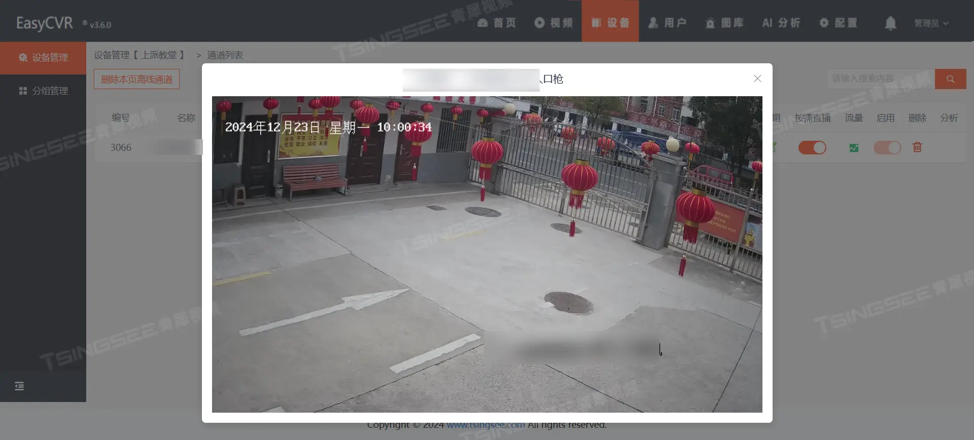 EasyCVR安防监控视频系统采用先进的网络传输技术,支持高清视频的接入和传输,能够满足大规模、高并发的远程监控需求。平台支持多协议接入,能将接入到视频流转码为多格式进行分发,包括RTMP、RTSP、HTTP-FLV、WebSocket-FLV、HLS、WebRTC、WS-FMP4、HTTP-FMP4等格式。