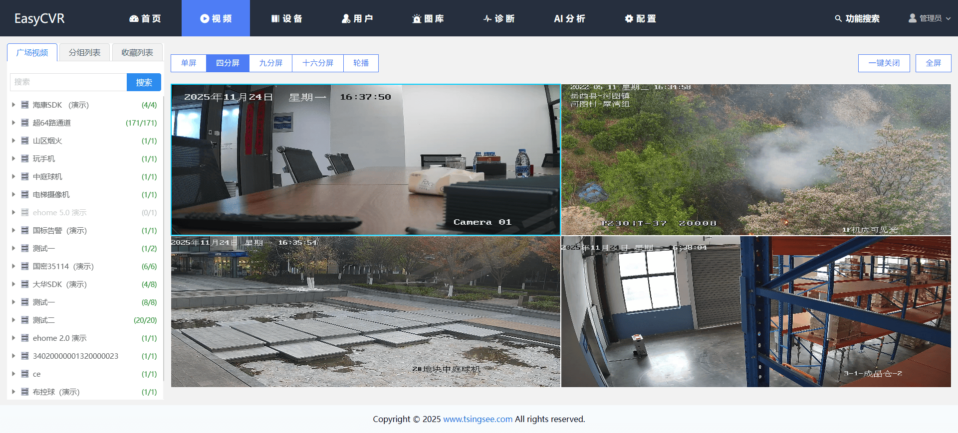 出入口匝道作为高速公路、城市快速路的关键交通节点,是车流交汇、方向转换的核心区域,却也长期面临拥堵频发、事故率高、管控滞后等痛点。传统视频监控方案因存在协议兼容不足、网络传输不稳定、智能分析缺失等问题,难以满足匝道场景实时管控、快速响应的需求。安防监控EasyCVR视频汇聚平台作为一款功能强劲的智能安防视频系统精准适配出入口匝道场景的特殊需求,通过技术创新构建全链路智慧管控体系。