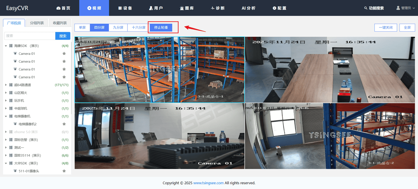 EasyCVR将接入的异构视频流统一转码为RTMP、RTSP、HTTP-FLV、WebSocket-FLV、HLS、WebRTC、WS-FMP4、HTTP-FMP4等标准格式,支持指挥中心大屏、Web浏览器、手机APP、微信小程序等多终端无插件访问,实现对场馆的远程管控与移动调度,适配赛事期间的高强度管理需求。