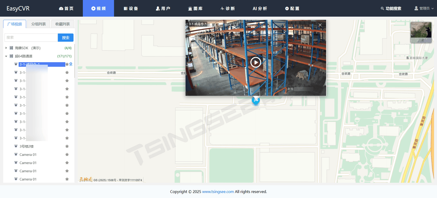 在疏散通道、安全出口、消防栓等关键点位部署监控设备,通过AI算法实时检测通道占用、消防设施遮挡等问题,确保应急通道畅通。当发生火灾等紧急情况时,管理人员可通过平台快速调取现场视频,结合GIS地图定位事发点,为救援力量提供实时现场画面。