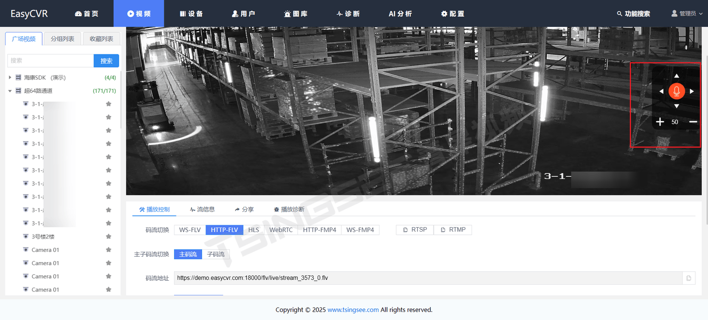 - 多终端实时直播:提供RTMP、RTSP、HTTP-FLV、WebSocket-FLV、HLS、WebRTC、WS-FMP4、HTTP-FMP4等多种流媒体格式,支持PC、手机、平板等多终端低延迟观看实时视频,方便管理人员随时随地巡查。