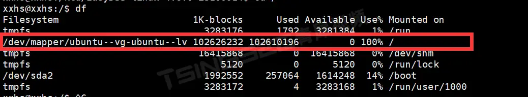 出现这种报错,一般是数据库或磁盘已满导致系统没有操作空间。我们查询EasyDSS服务所在磁盘的空间,确实已满: