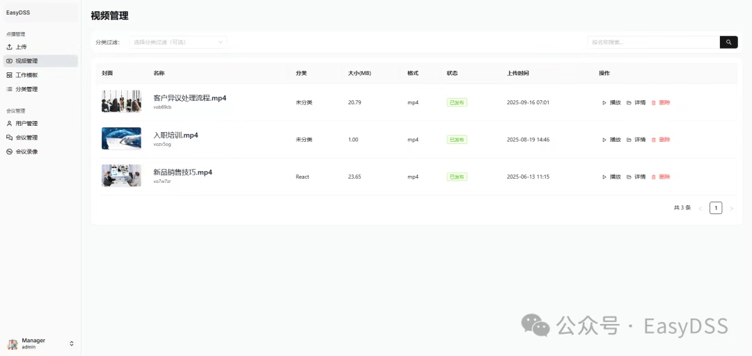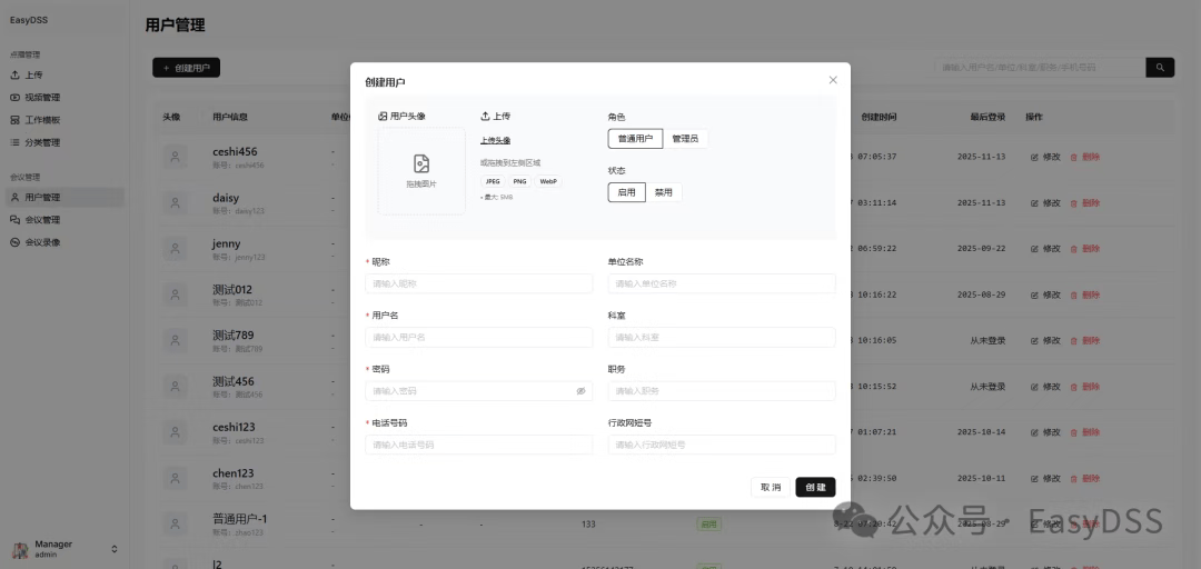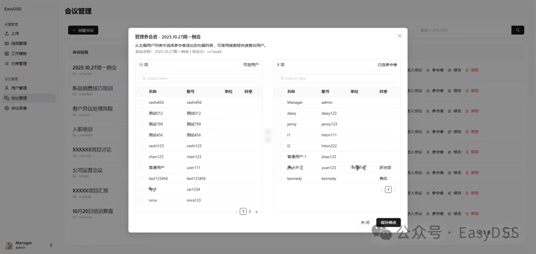 传统视频会议中,权限混乱、操作繁琐、记录缺失等问题常让协作效率大打折扣。新版EasyDSS通过用户-会议-管理三级体系,彻底解决这些痛点。