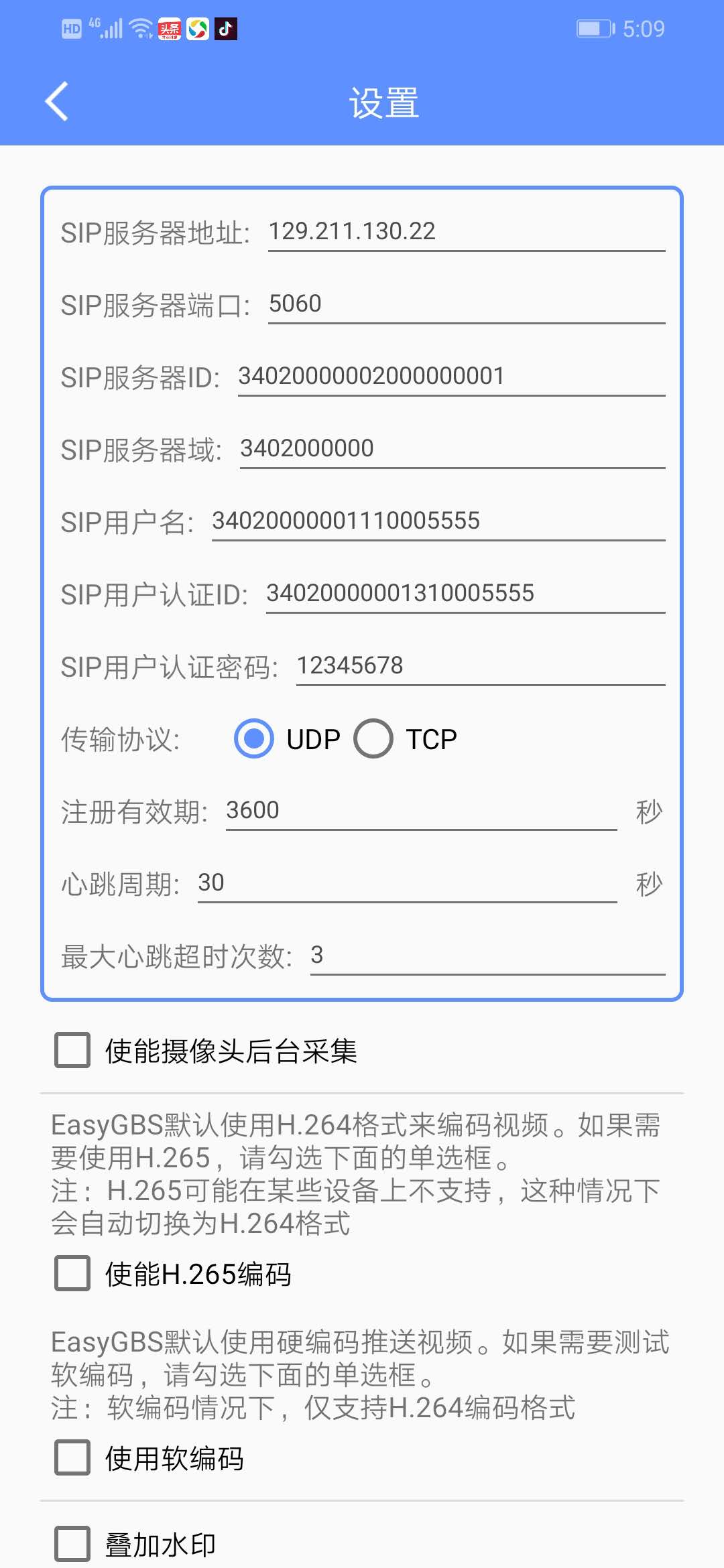 1、首先我们要在手机安装EasyGBD推流平台,此平台目前只支持Android系统,在设置中进行配置(配置默认在我们国标流媒体平台,也可自行修改);
