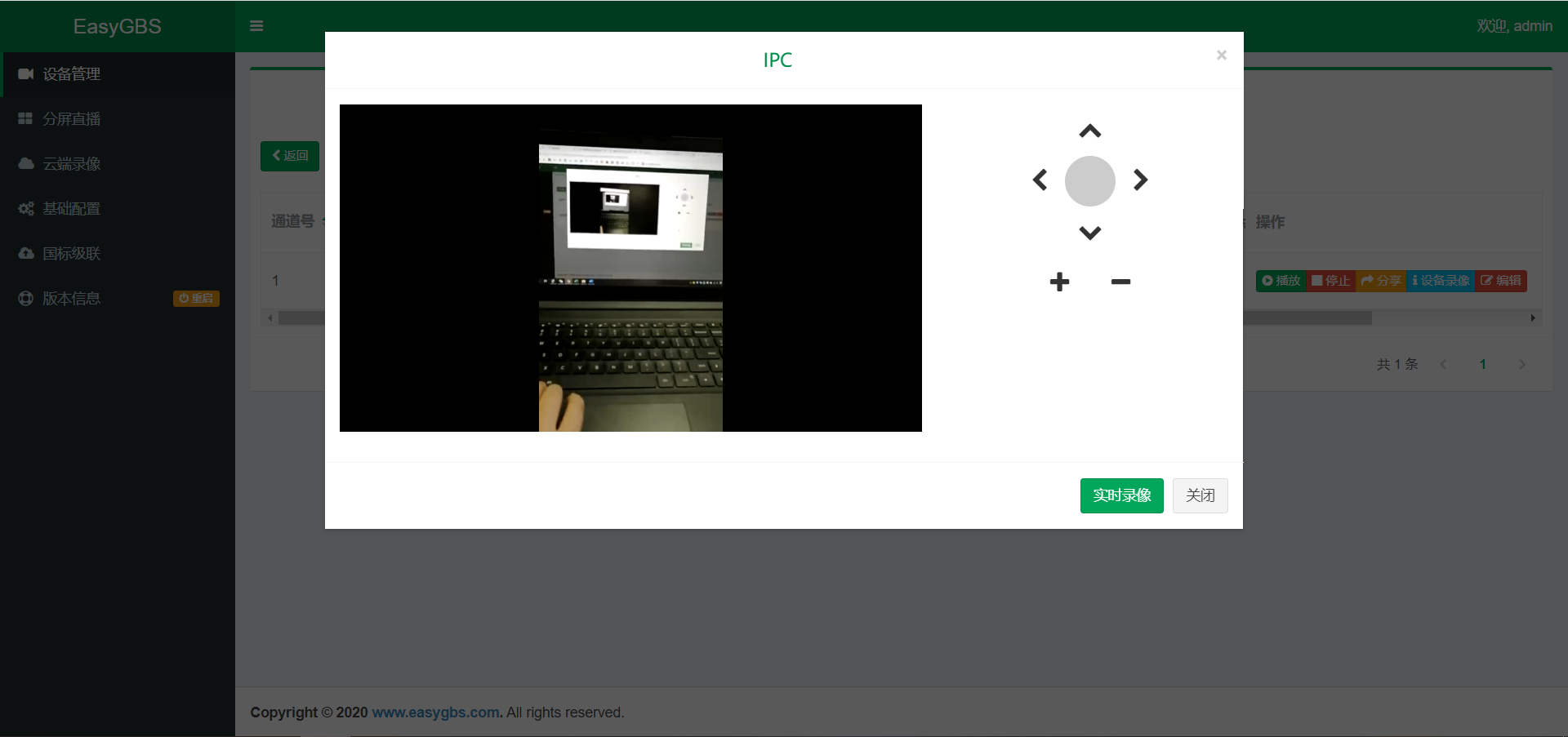 3、来看一下直播效果,进入视频通道查看视频,就能够看到实时推流已经完成。