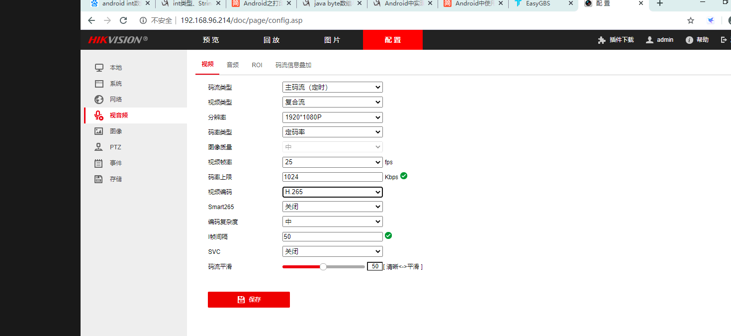 通过打印观看,发现视频的编码参数videocodec没有识别到,而进入摄像机视频配置页面观看发现,视频的编码参数是h.265。这里我们将视频的编码改为h.264,再点击页面进行播放,视频就可以正常播放了。
