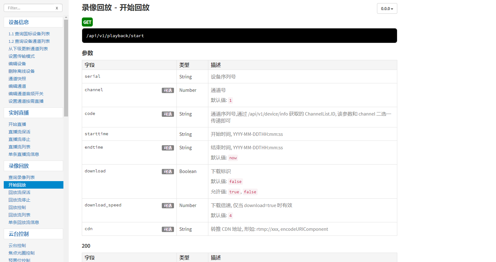 2)调取单条回放流信息接口,获取单个视频回放流的信息