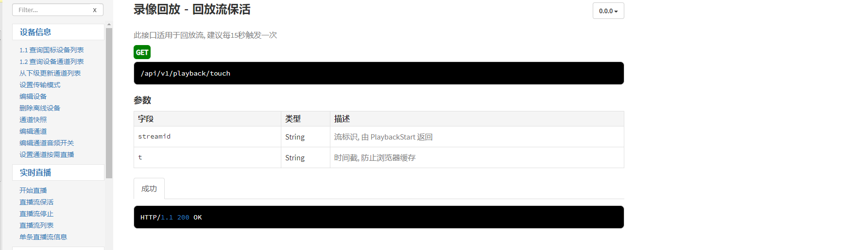 3)然后再调用接口对回放的视频流进行保活操作