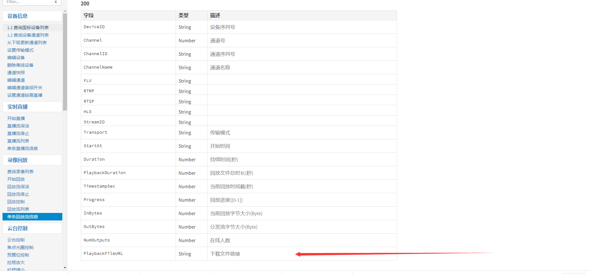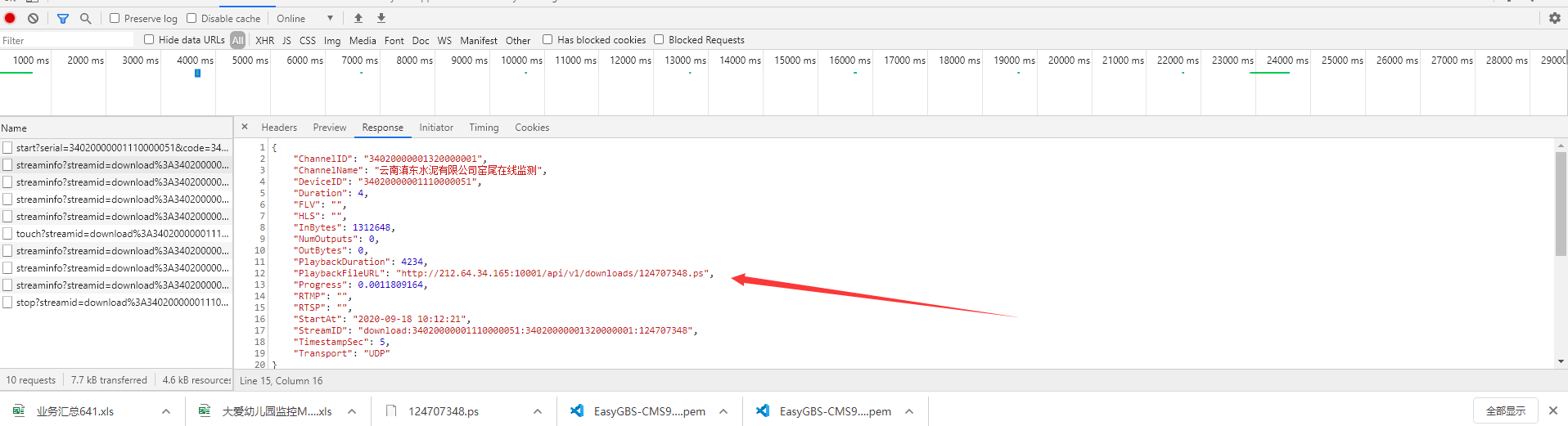 5)这时我们回去到单条回放流信息里面请求它的下载连接地址