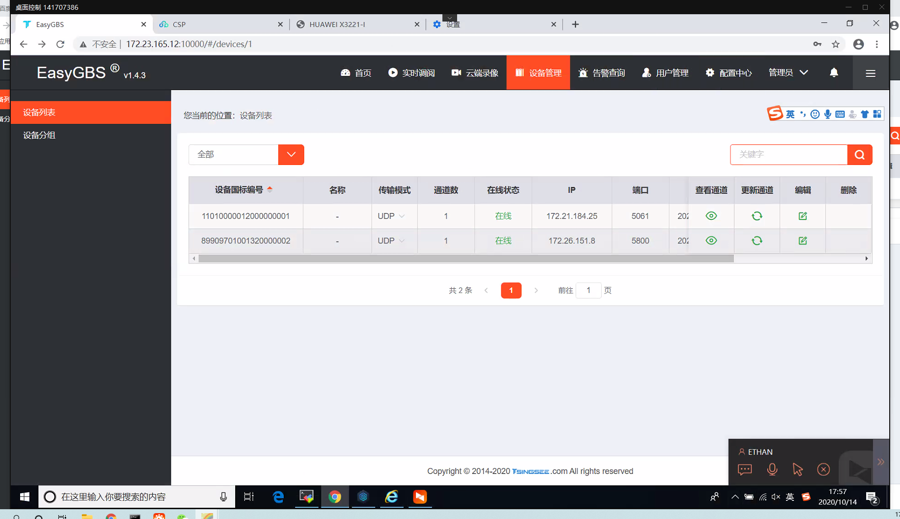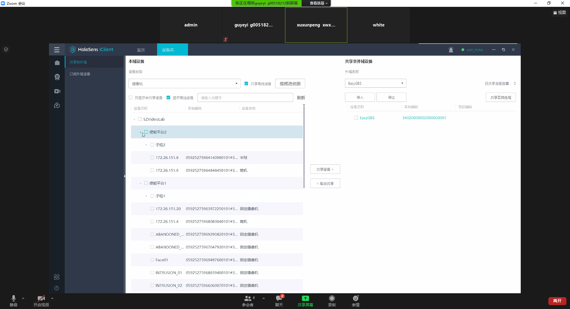 4.最后在华为云平台上打开客户端,共享通道到EasyGBS就完成级联了。