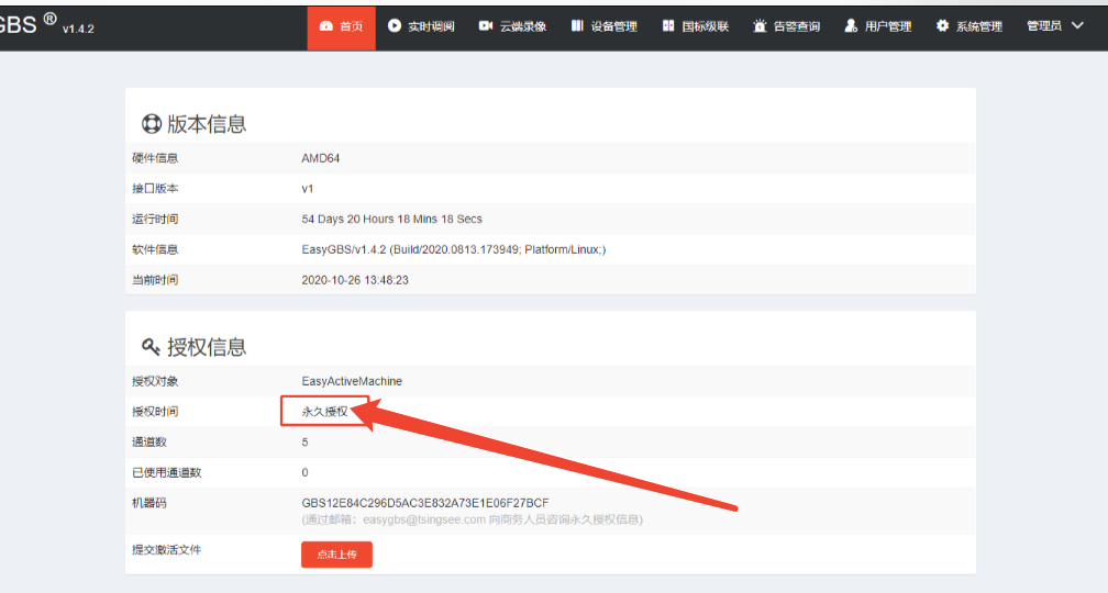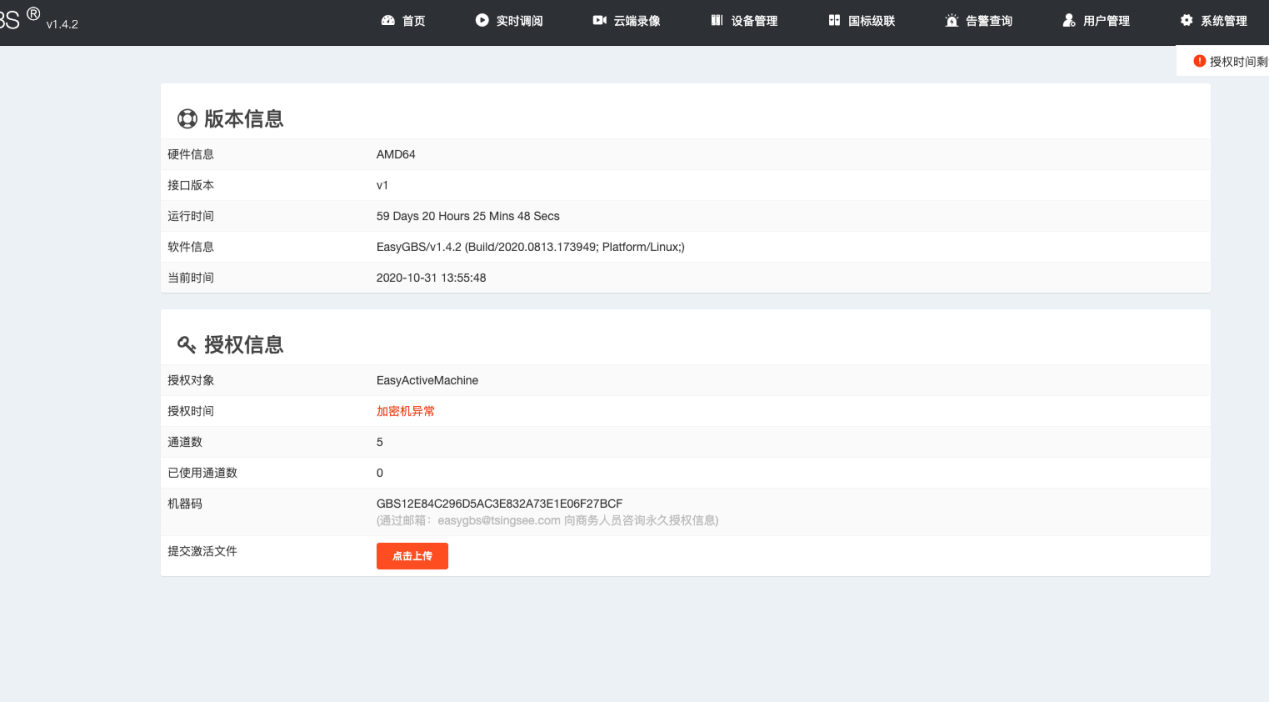其实并非如此,加密机给服务器上的流媒体服务软件授权,是单向的机制,即加密机一直给服务器那边发送数据,并且是实时的。故而,需要确保加密机一直在有电和有网的情况下,平台那边才能一直显示永久授权。因此解决上图中的问题,只需要确保加密机有电并且有网即可。