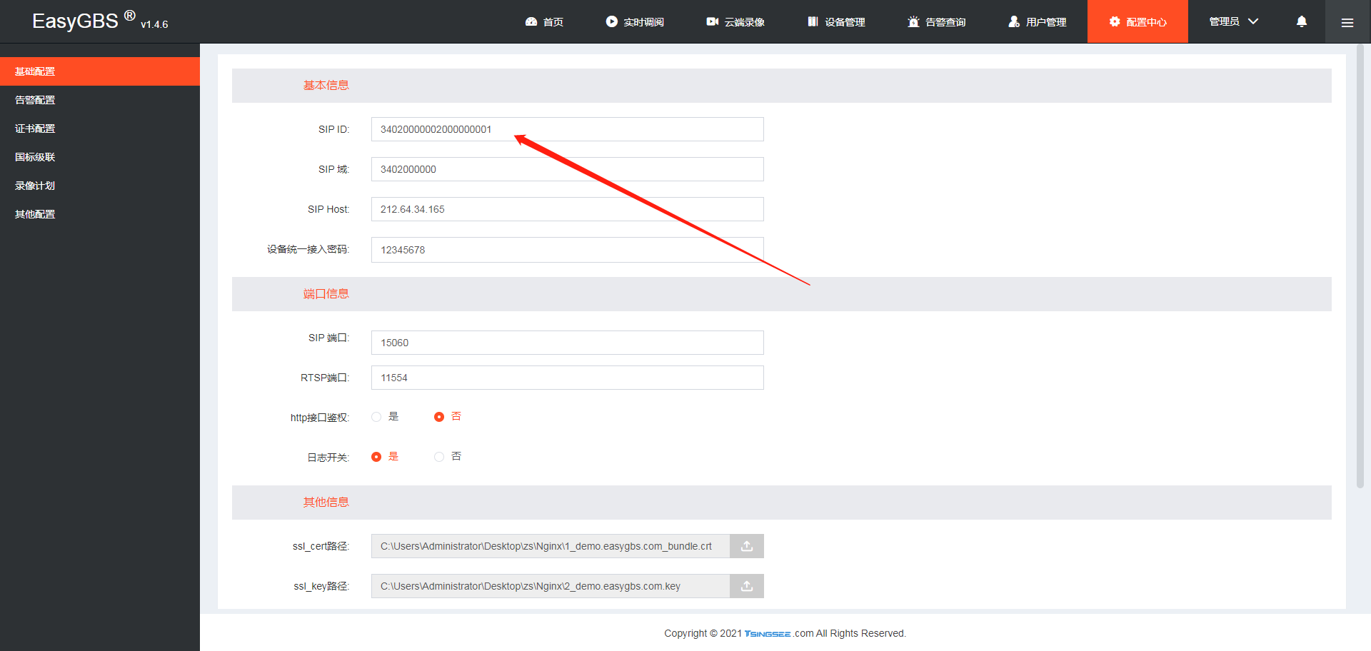 另外,由于有些平台可能和政府办公或管理挂钩,因此下级平台可能会对SIP ID的传输有规则上面的限制,这个也会导致接入失败,最好是根据下级接入的SIP ID进行修改,修改完成后重启EasyGBS服务,再次接入就不会有报错产生了。