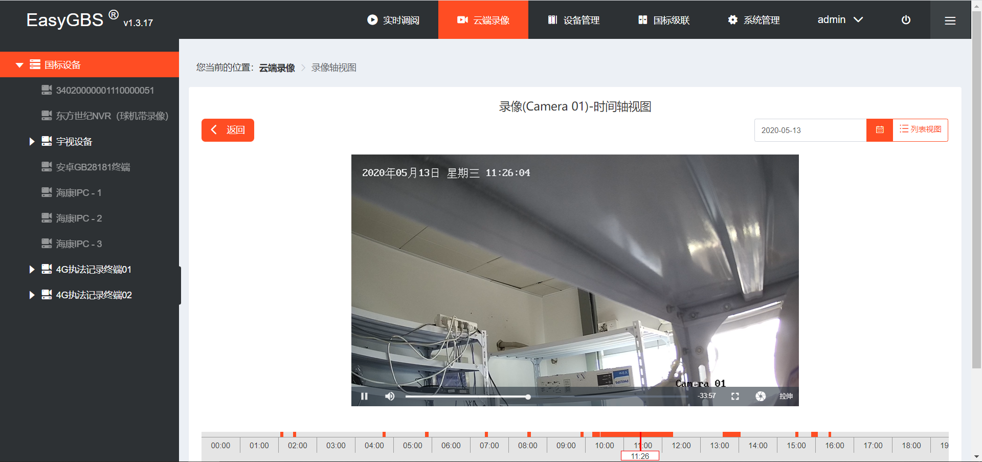 EasyGBS视频监控平台中的录像回放功能支持前端硬盘录像机的录像视频回放,并且支持对成功接入的摄像机在服务器中实时视频进行7*24h录像,并且支持录像的检索与回放;