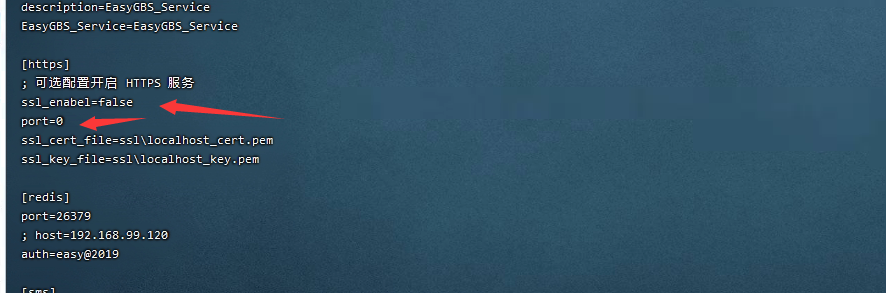 3.需要在EasyGBS上面关闭https,并且将他的端口设置为0,这是为了避免EasyNVS上取流地址和http起冲突。