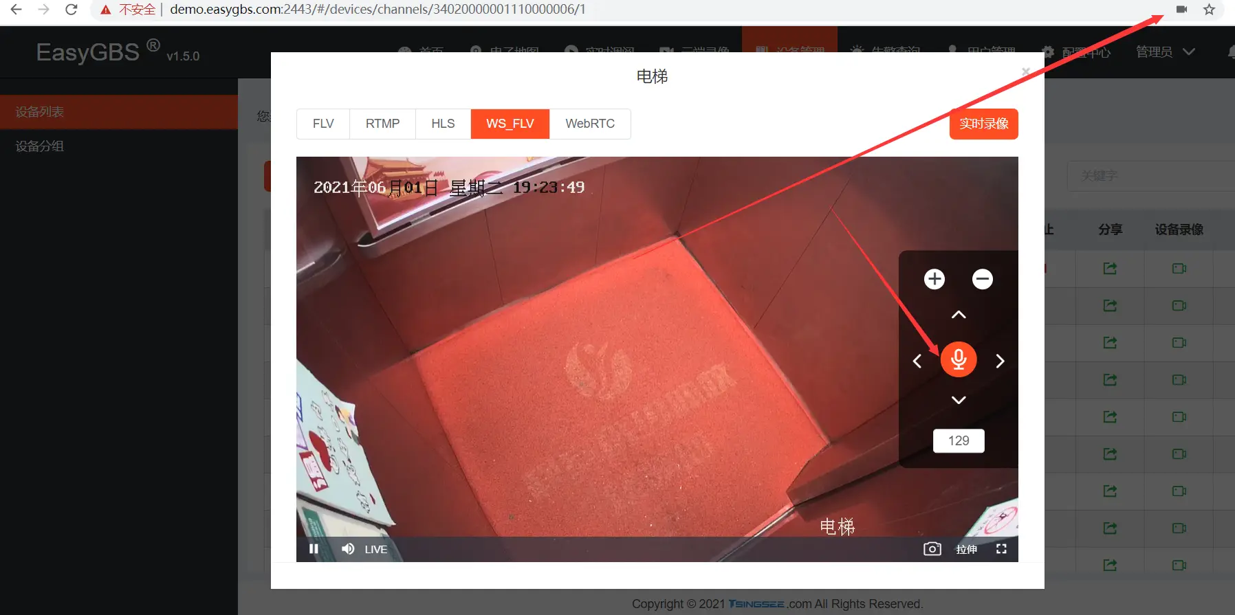 EasyGBS的对讲喊话功能是我们去年就已经成熟运用的功能了,只要设备带有对讲功能,就可以通过EasyGBS来进行对讲。