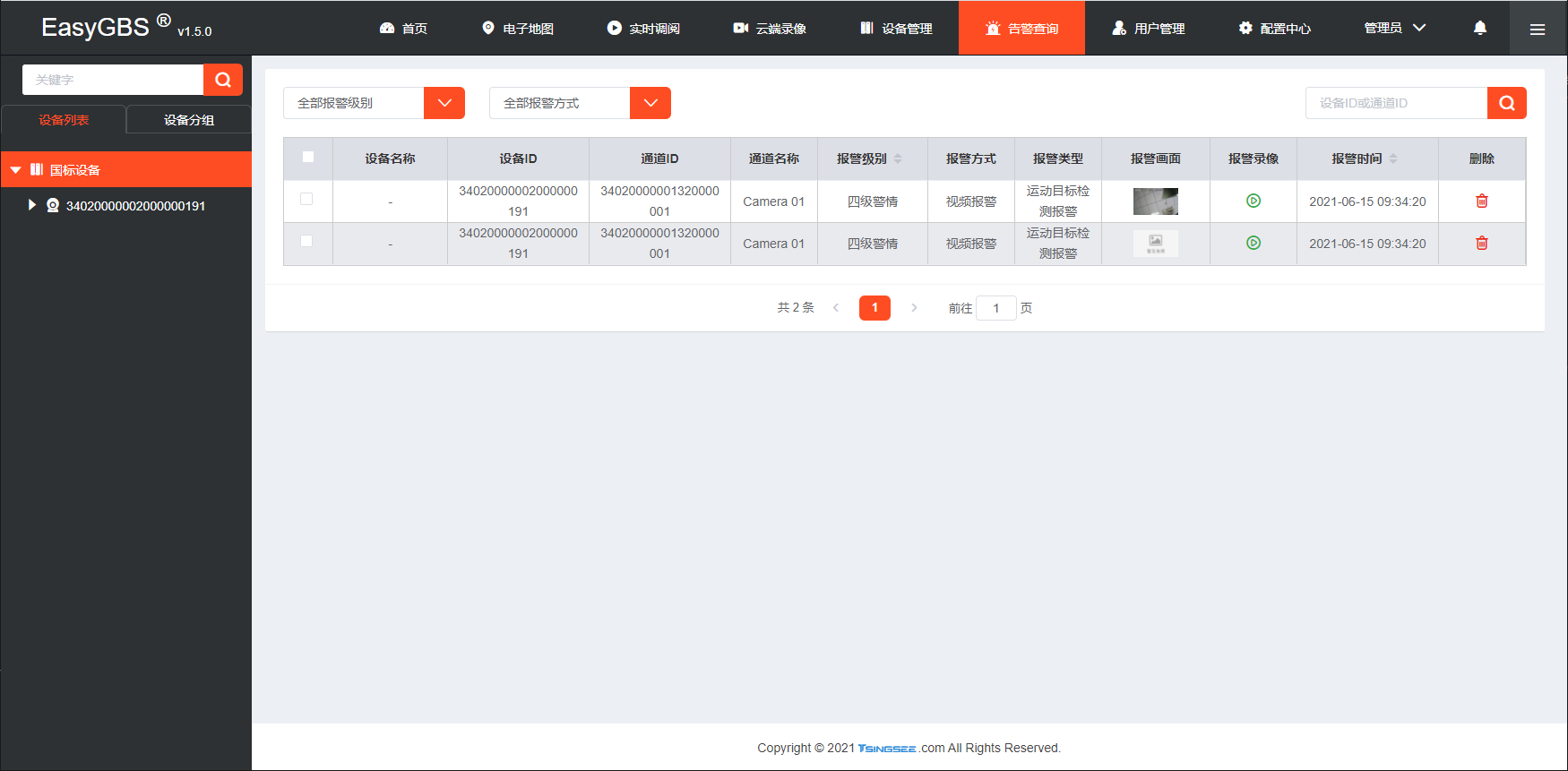 国标GB28181协议视频平台EasyGBS新增告警录像